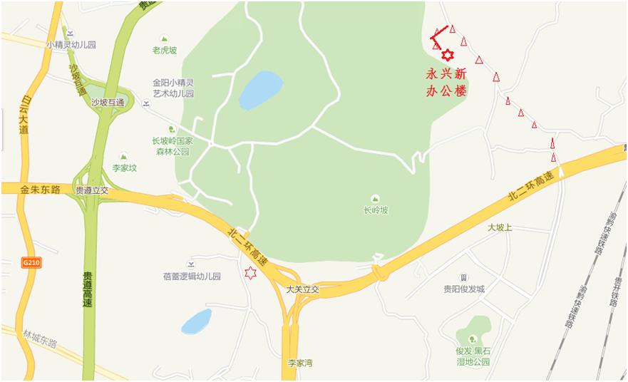 新办公楼交通线路:北二环俊发城上跨桥往都溪林场方向前行900米)