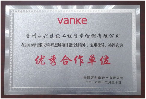 2019年1月26日上午,贵阳万科房地产公司在总部玲珑湾会议室举行了理想城、悦城项目2018年度总结大会,公司被评为优秀合作单位并在会上受到表彰。这个荣誉会不断激励公司全体员工更加努力,在新的一年以更优质的工作质量和服务质量满足客户的需求,以更扎实的工作态度和严谨的工作作风实现公司2019年的总体目标。