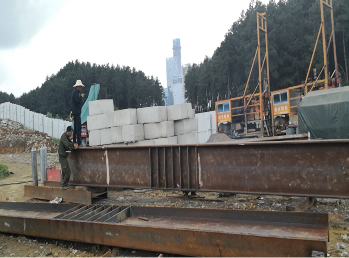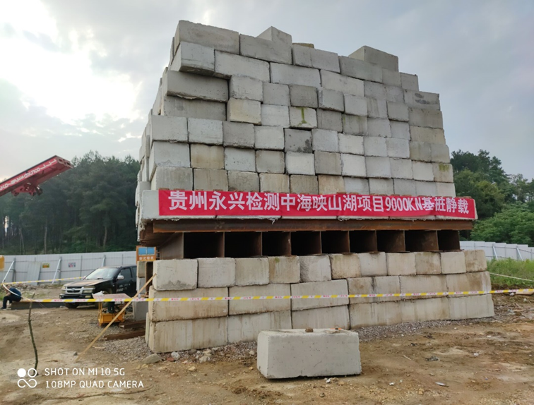 2020年6月7日,AB.COM承接的贵阳中海映山湖项目9000kN基桩堆载试验平台于当日下午15点58分顺利搭建完成。本次基桩堆载试验钢平台采用9米跨度的主梁,自重约7.6吨,平台底部尺寸约8×8m,平台中心最高处压重块离地约8.5米。本次竖向抗压静载试验,用于检测单桩的竖向抗压承载力,为本工程设计提供参考依据。