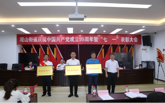2020年7月9日,观山街道工作委员会召开了观山街道庆祝中国共产党成立99周年暨“七·一”表彰大会,大会表彰了一批优秀共产党员、优秀党务工作者和先进基层党组织,公司党支部荣获“先进基层党组织”荣誉称号,同时支部杨友媚同志和张蕾同志也分别荣获“优秀党员”和“优秀党务工作者”称号,张蕾同志在会上代表优秀党务工作者做交流发言。