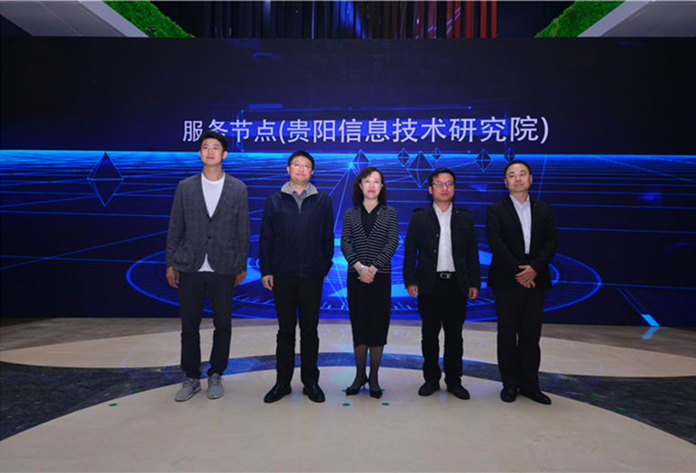 云上贵州大数据产业发展有限公司总经理杨云勇、贵阳市大数据集团总经理郑卫城、贵阳国家高新区大数据办副主任程灵锟、中科院软件所科技处主管黄唯倫、贵阳信息技术研究院常务副院长陈峰共同启动享链基础设施平台节点,分别有贵州省级节点云上享链云平台,贵阳市市级节点、贵阳国家高新区区级节点、中国科学院软件研究所服务节点和贵阳信息技术研究院服务节点。
