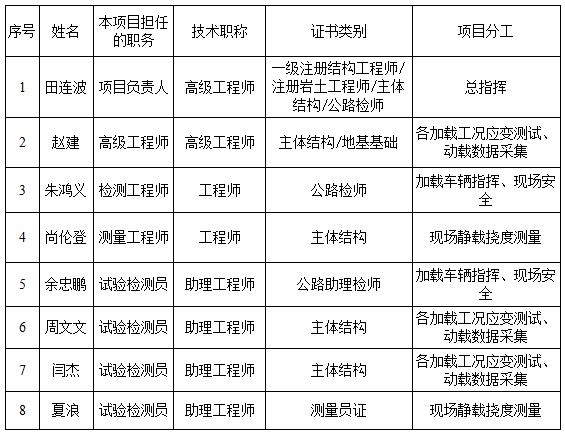 因该桥通车时间已定,桥梁荷载试验时间限定在两天内完成,为此,公司成立了桥梁荷载试验项目组,项目组成员组成及分工如下: