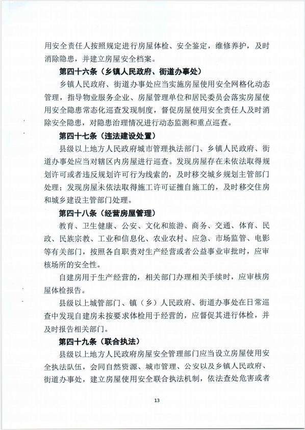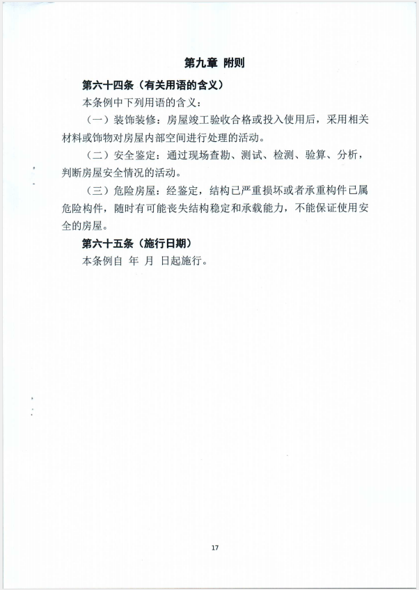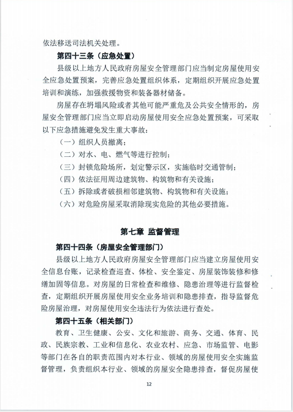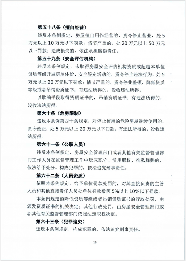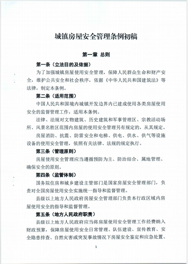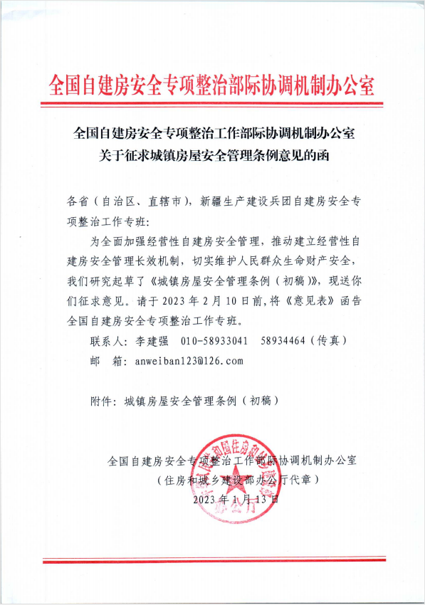 关于征求城镇房屋安全管理条例意见的函
