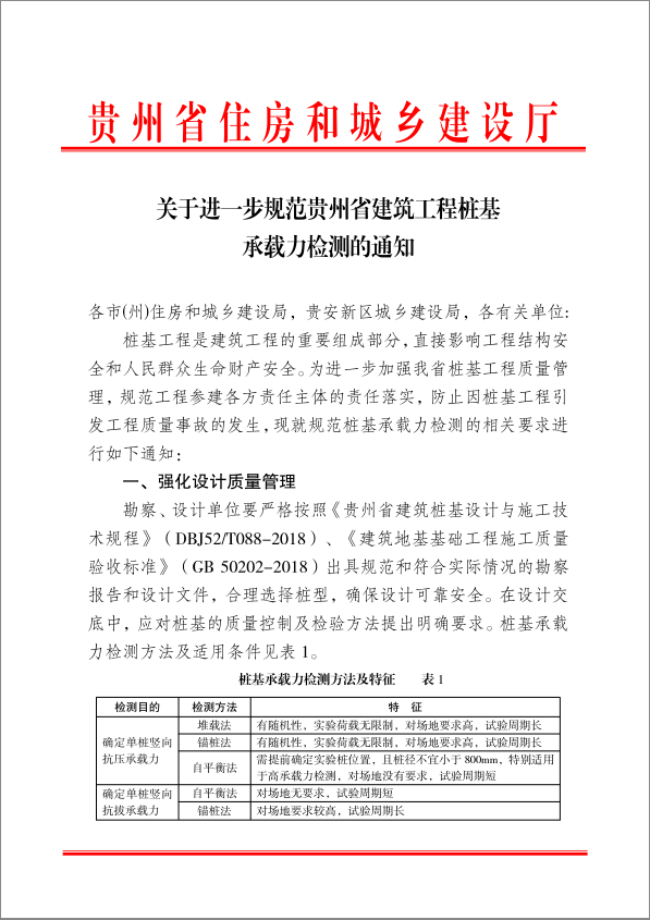 关于进一步规范贵州省建筑工程桩基承载力检测的通知