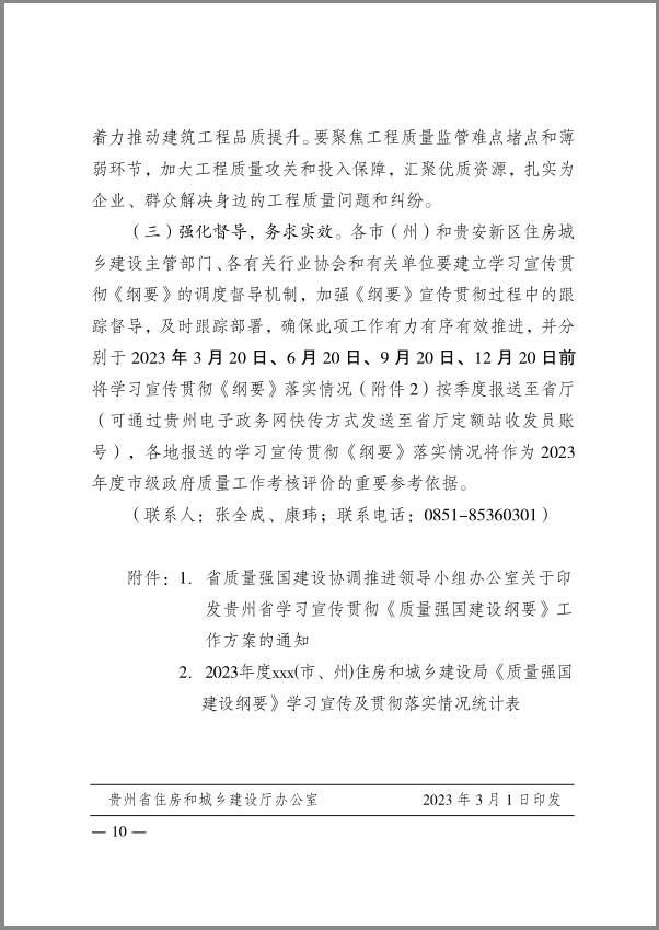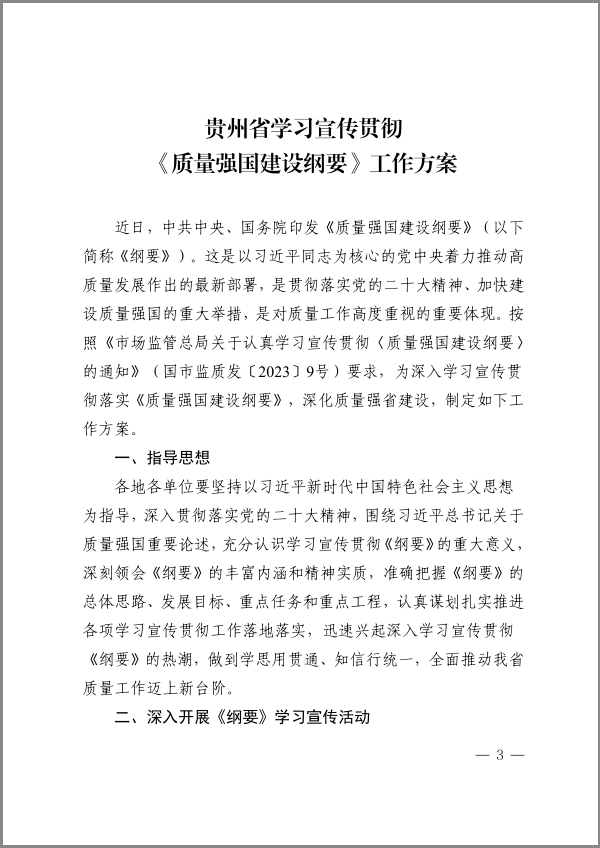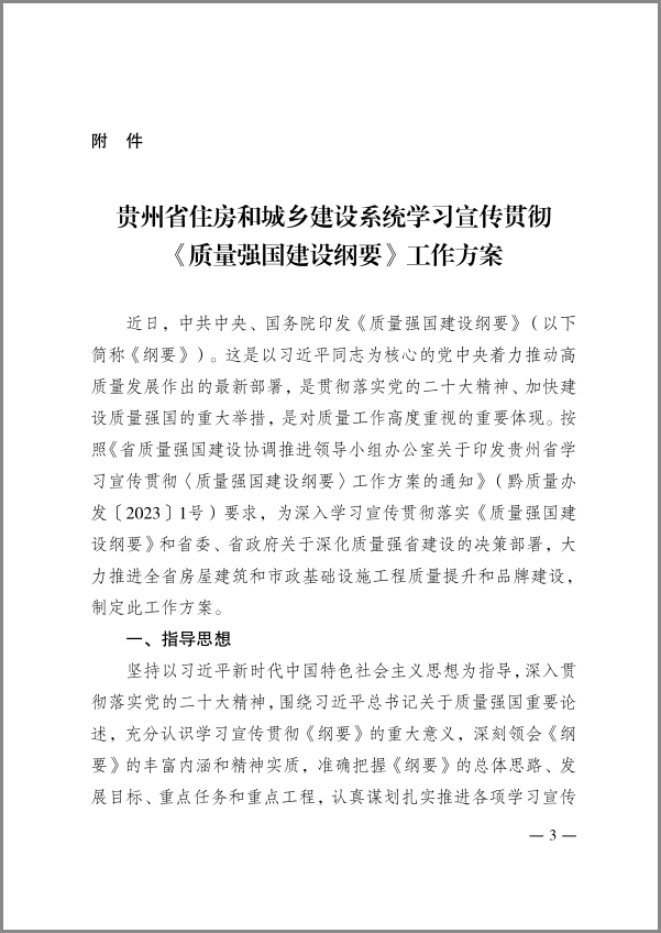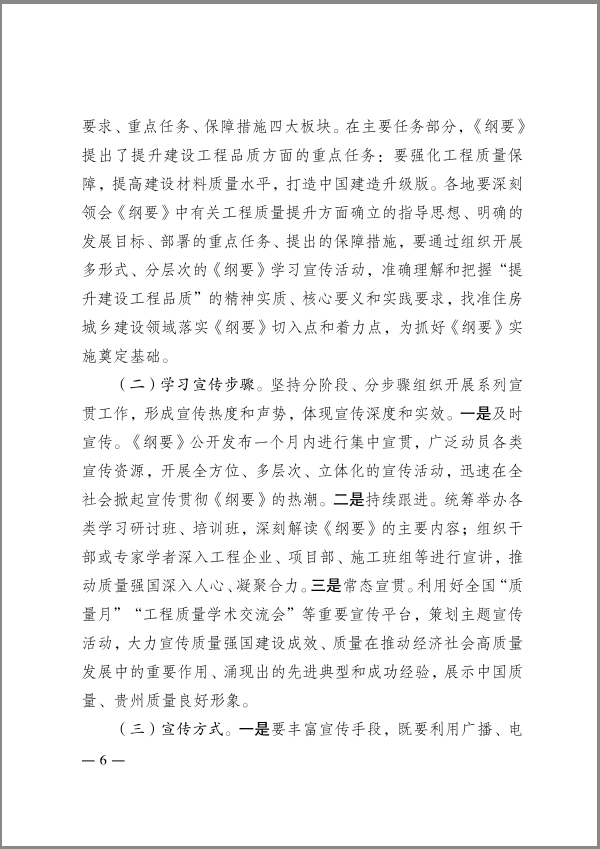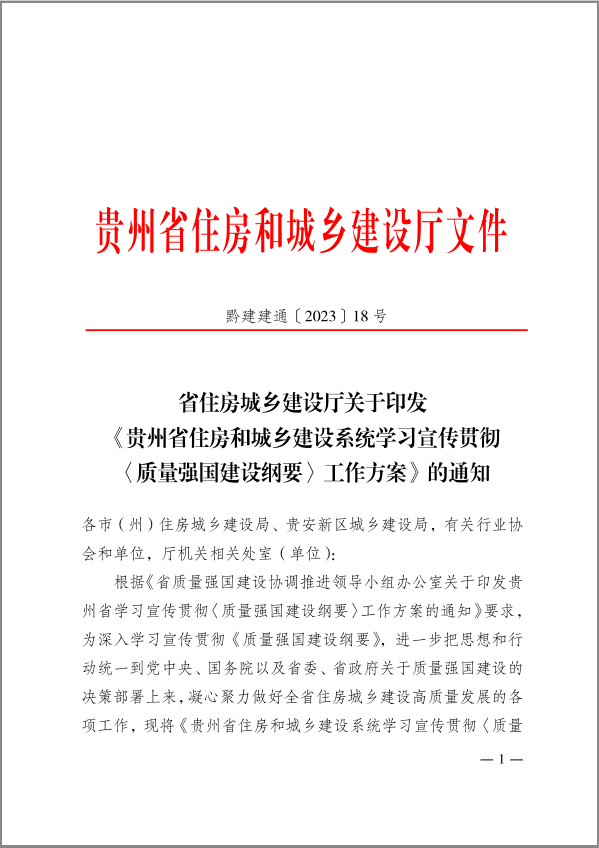 贵州省住房和城乡建设系统学习宣传贯彻 〈质量强国建设纲要〉工作方案