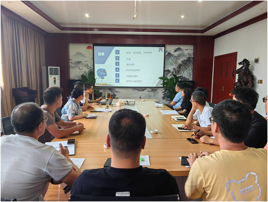 为有效提高公司既有建筑鉴定的工作质量和工作效率,汲取福建省泉州市欣佳酒店“3·7”坍塌事故和湖南长沙“4·29”特别重大居民自建房倒塌事故教训,公司于2023年7月28日组织全体管理人员及鉴定技术人员举行了“既有建筑鉴定知识”培训。